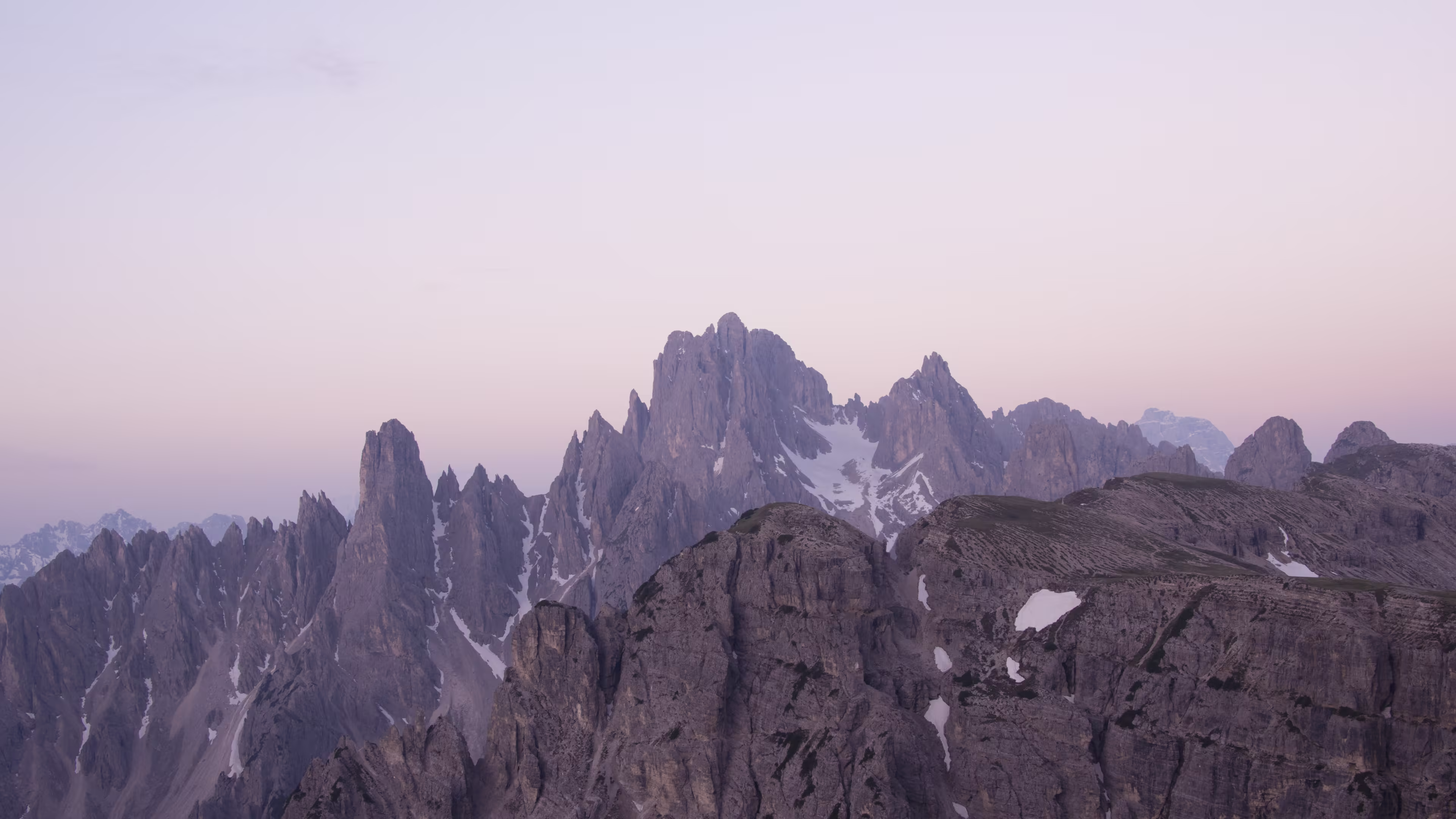 A photographed mountain horizon with pale dusk light, prepared as a clean scenic still for covers, headers, and visual systems that need calm structure.